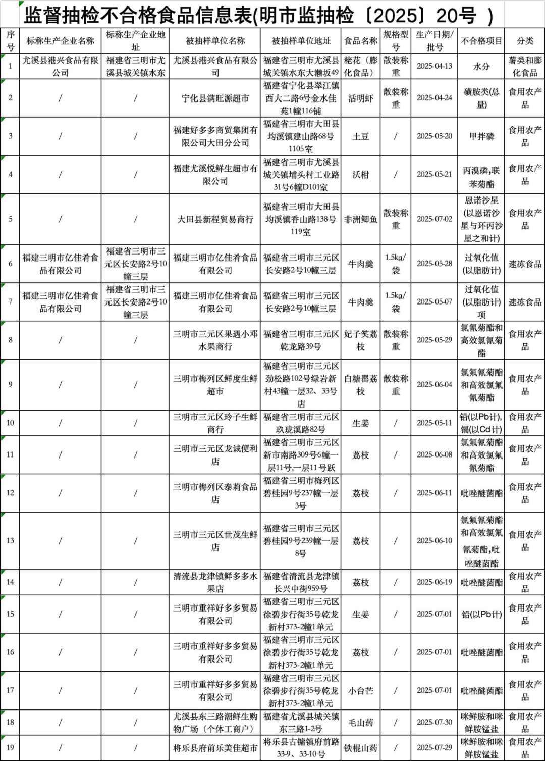 此中及格724批次,防控食物平安风险。督促出产运营者履行权利,三明市市场监视办理局,2025年食物监视抽检消息(第3期)公开多批次食物被检出不及格,请拨打食物平安赞扬举报电线进行赞扬举报。出格提示消费者,现将我局开展全市食物平安监视抽检相关消息发布如下:近日,不及格19批次。