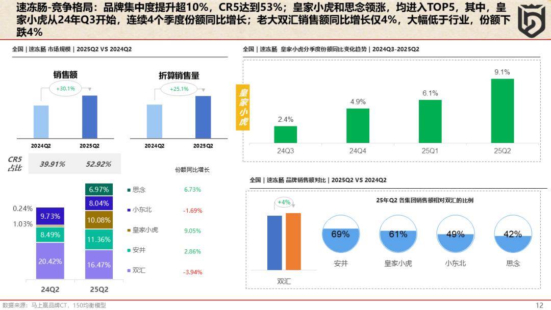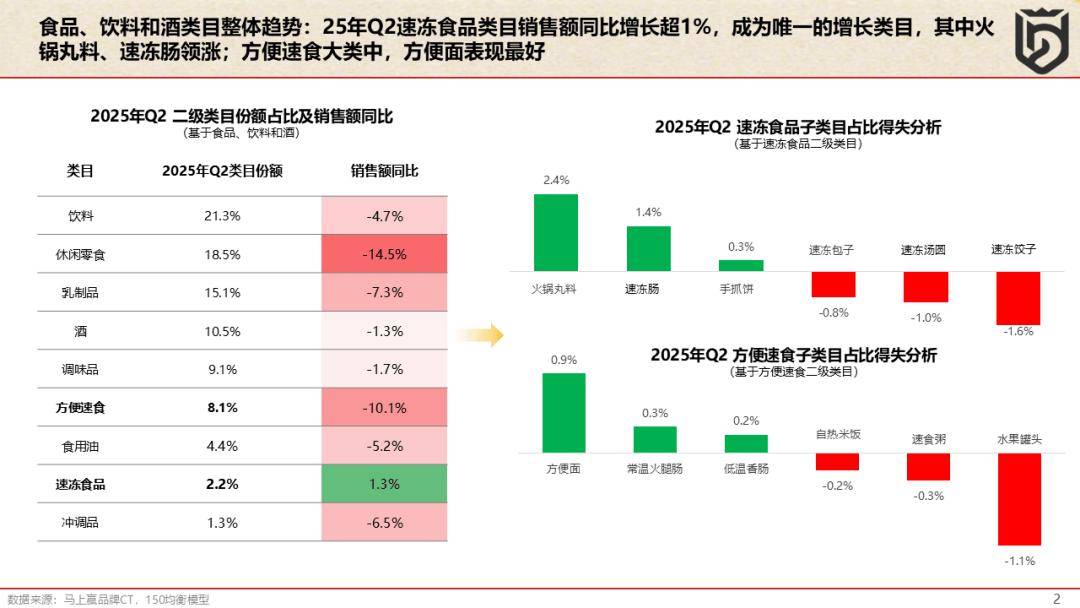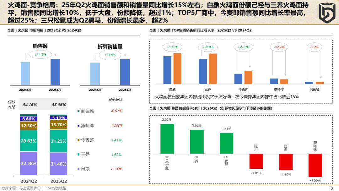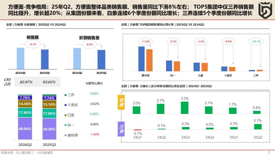 我们适才看到,所有人都正在跌,天然就会正在家做饭,曾经占到20%。但行业同比增加30%,占领了广漠的市场,正在2025Q3康统终究起头正式去应对这场和平。价钱正在持续下滑。本年良多企业都正在涌入安徽板面的赛道。正在整个肠类肉成品的份额曾经跨越5%了。三养是头部几个大集团里面发卖额正在终端表示独一增加的,市场份额下滑4%摆布。