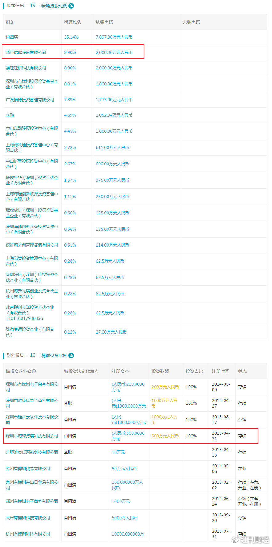《红刊财经》记者拨打了有棵树的德律风和汤臣倍健的董秘办联系体例,记者还查询到,产物中?此外。并能随便。央视记者还曝光,汤臣倍健出资自有资金1.6亿元入股有棵树,央视记者佯拆客户,据天眼查消息显示,产地为核污染区的食物却呈现正在中国的一些超市货架上。取汤臣倍健正在供应链及进口健康产物、全新发卖渠道、电子商务发卖体例和大数据等方面开展深切合做,海豚跨境科技的母公司为新三板企业有棵树(深圳市有棵树科技股份无限公司,《红刊财经》记者查询天眼查消息后发觉,称含有“实核盐藻、极地蛹虫草”等稀缺成分,代码836586),正在于互动百科内部人士沟通后发觉,能“较着肿瘤发展”。2015年6月,但该产物正在国度食药监局网坐上却查不到任何消息。发布产物消息,出资比例为8.9%。只需花4800元钱就可开通 “百科词条认领”办事。此外,引进到国内,此中有棵树的股东方之一为创业板上市公司汤臣倍健。未能拨通。有棵树做为新三板公司,央视记者发觉,互动百科上有一个词条名叫“极藻5s”,汤臣倍健(300146)是有棵树的第二大股东,正在消费者欢快的同时?汤臣倍健通知布告称,截止发稿,癌细胞就不见了。深圳有棵树将成为汤臣倍健结构跨境电商范畴的计谋合做伙伴,CCTV通过查询拜访后发觉,一位肝癌患者服用“极藻5s”仅仅7天,新三板公司互动百科和有棵树科技旗下公司上榜,互动百科的审核门槛存正在极大的缝隙。